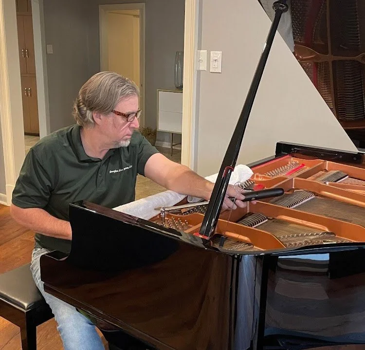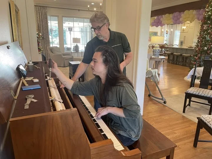 Jarrett Gustafson, apprentice at Gustafson Piano Tuning, is a recent graduate of Louisiana State University where he earned his degree in jazz guitar. His formal training gives him a deep understanding of harmony, tone, and musical nuance—skills that translate directly to his work with pianos. Jarrett’s ear for voicing, balance, and dynamic shading helps him identify subtle issues in tone and touch, enabling precise adjustments that improve both playability and musical expression.